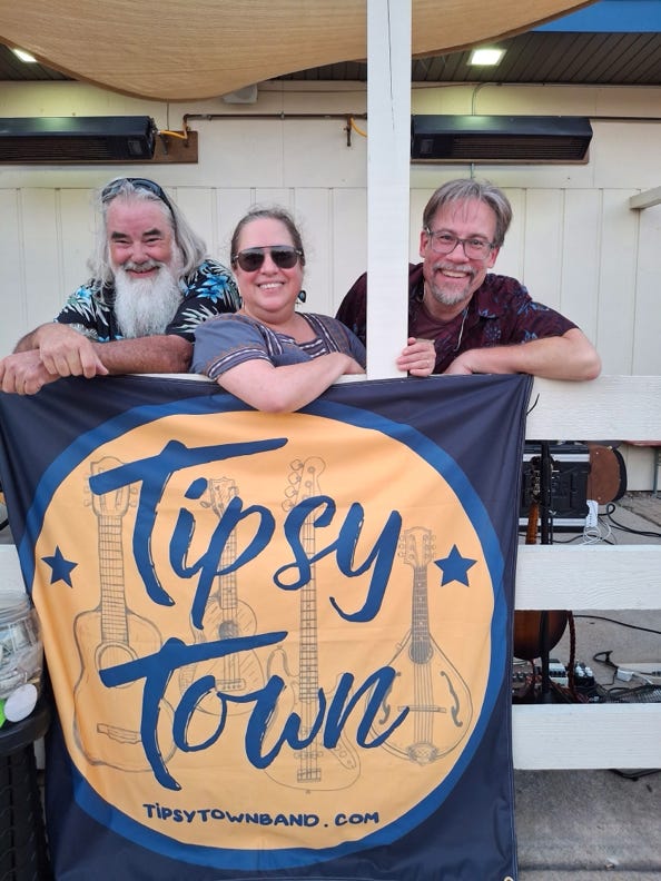 Based in Chicagoland, Tipsy Town is an Americana band featuring powerhouse vocals, sweet harmonies, and lively melodies for your listening pleasure. Performing covers and originals, the band plays a wide variety of genres and styles, from Americana, rock, blues, and country to old jazz standards, Motown, and bluegrass. Audiences can expect 3-part harmonies as the band takes turns on lead vocals, along with nifty picking on the acoustic guitar, mandolin, electric bass, and ukulele. Formed in 2022, the band has been performing 30+ shows per year in northern Illinois and southern Wisconsin. The band is looking forward to playing venues and festivals near you! All the members have been playing live for many years, and they are excited about growing together as musicians to create a unique and entertaining sound.
